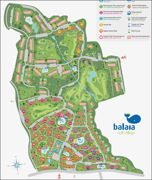 Set within a site of approximately 40 hectares, Balaia Golf Village is distinguished by the quality of its setting and amenities, currently featuring a 9-hole golf course, 530 apartments, 7 swimming pools, and 4 restaurants, all within an environment defined by harmony between nature, architecture, and leisure.