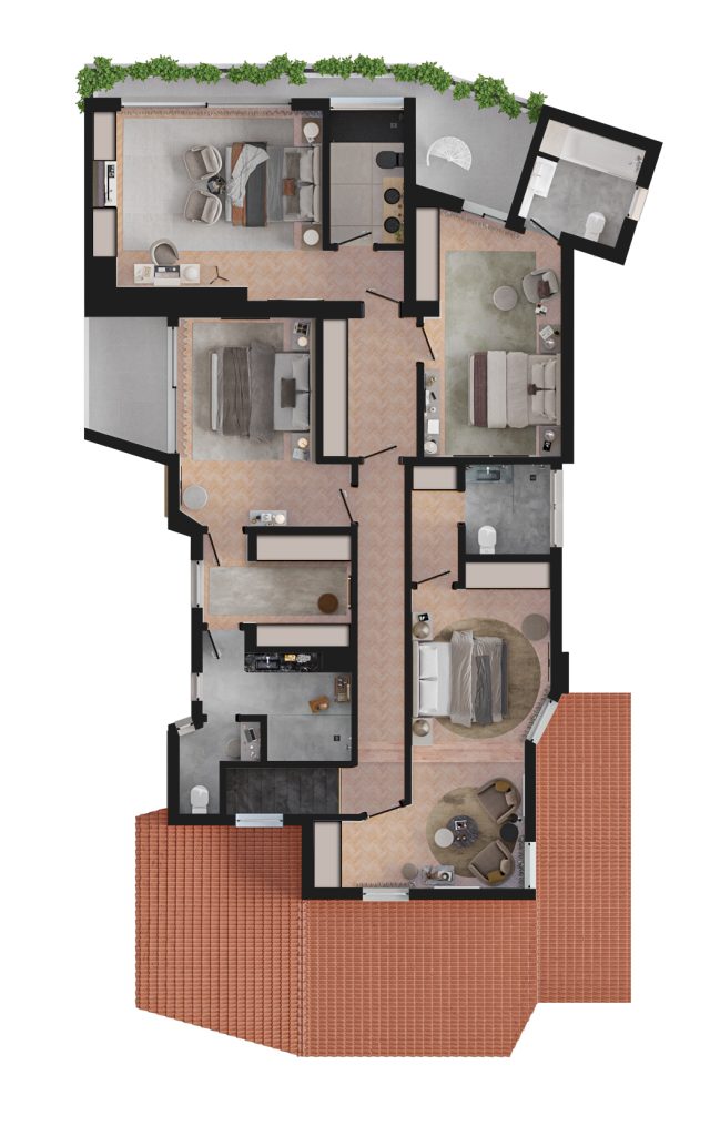 • An independent studio and gym of approximately 80 m², offering flexible usage with pre-installation for a sauna or jacuzzi. This space can even be converted into a one-bedroom apartment, perfect for guests or extended family